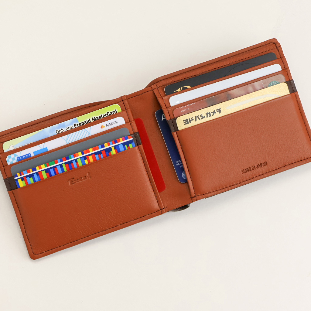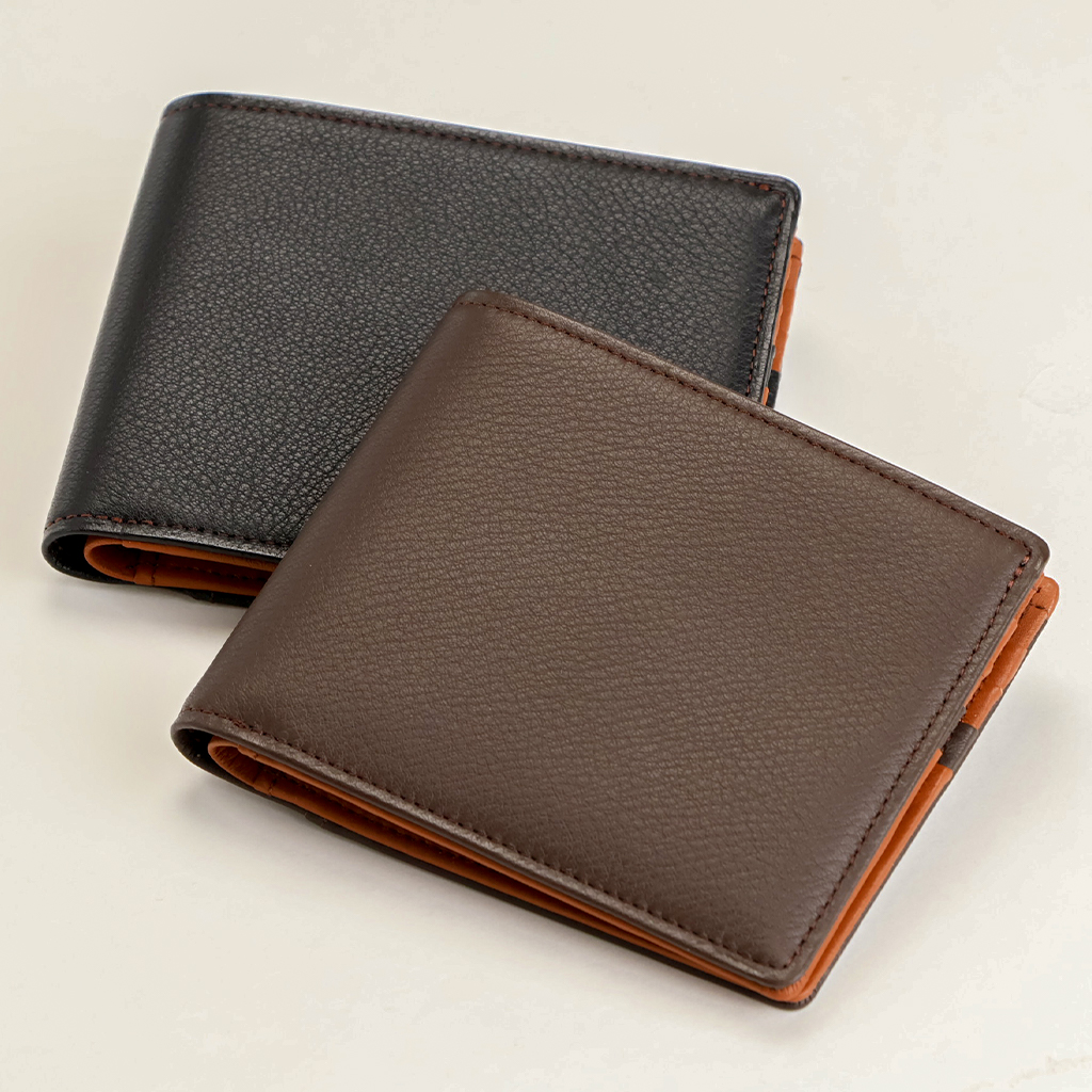 シンプルでベーシックな、使い勝手の良い上質な二つ折り財布です。