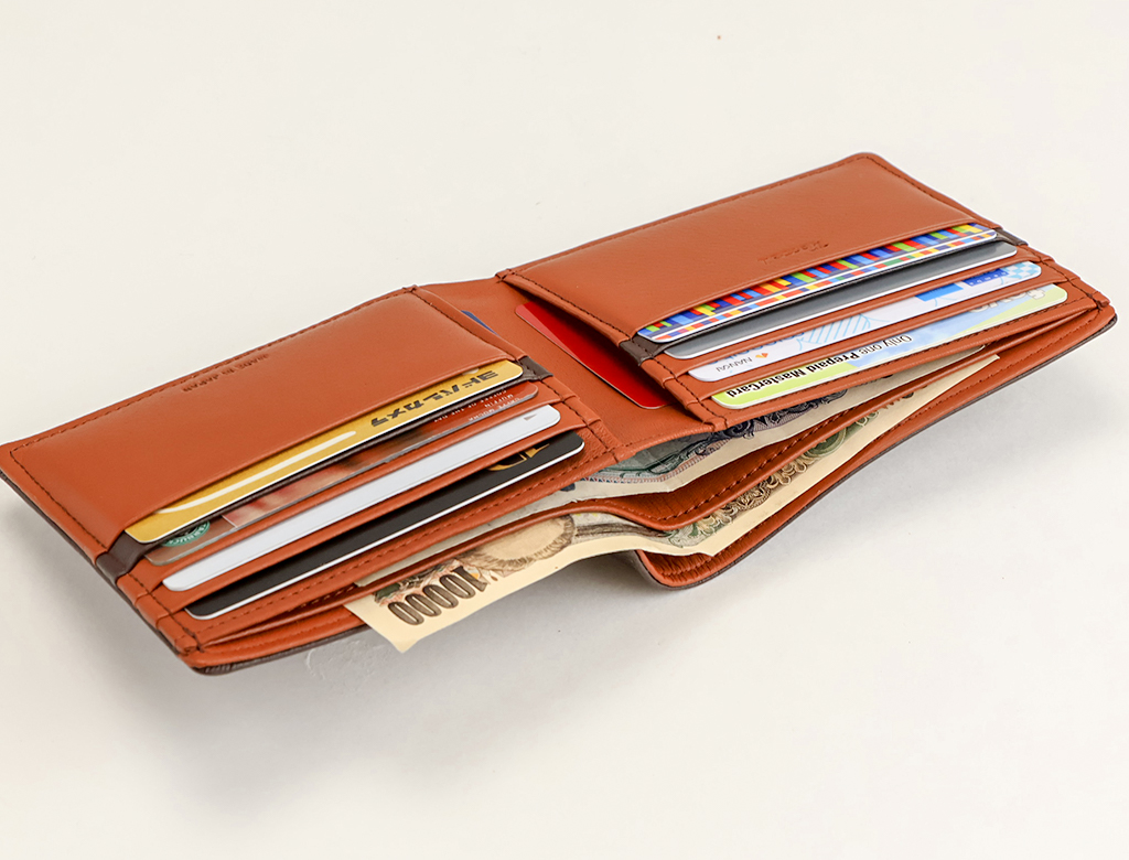 札入れは中仕切り付きで、紙幣やレシートなどを分けて収納できます。