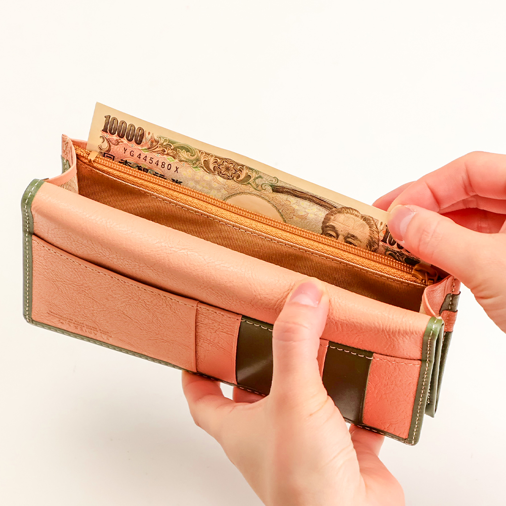 マチ付きの札入れ。1万円札もスムーズに入ります。