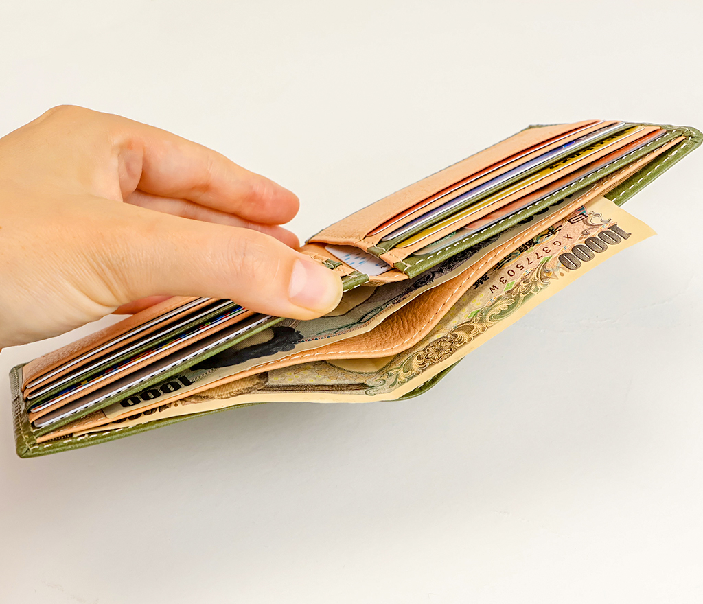 紙幣やレシートを分けて収納できます。