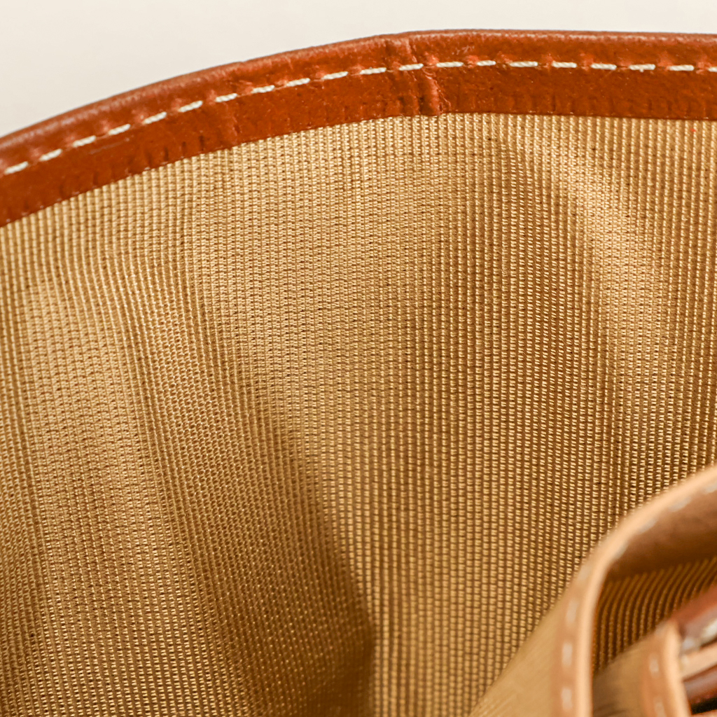 内側にヌメ革らしい明るいベージュカラーの牛革(栃木レザー)を使用しています。