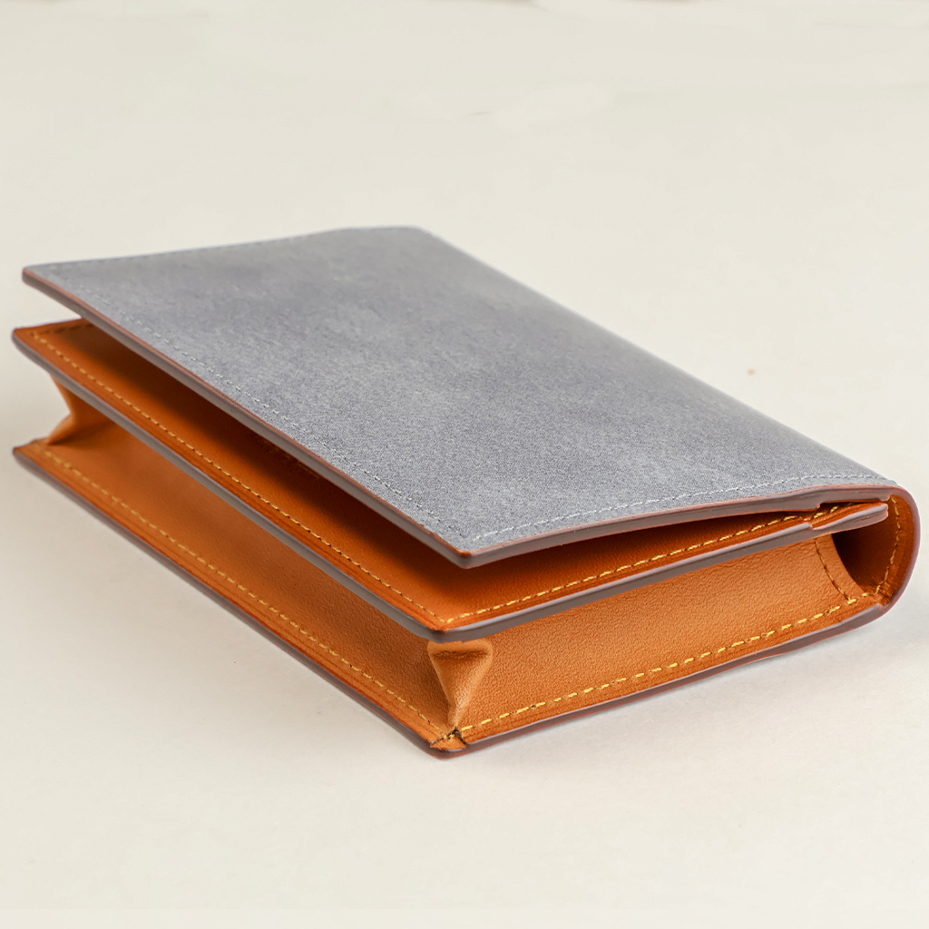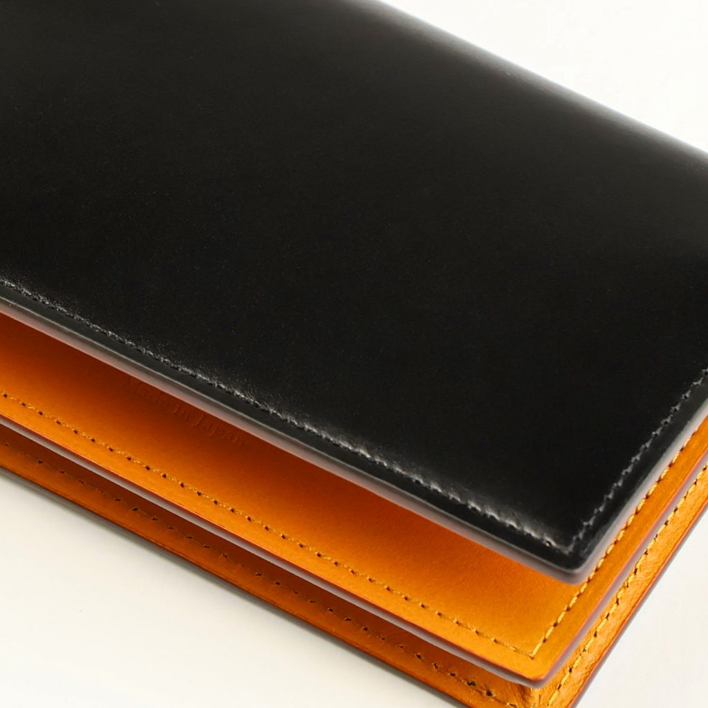 塗りと磨きを何度も繰り返し、磨き上げられた裁断面は、半透明な光沢感をもつ革の層が、何層にも透けて見える美しい仕上がりになります。