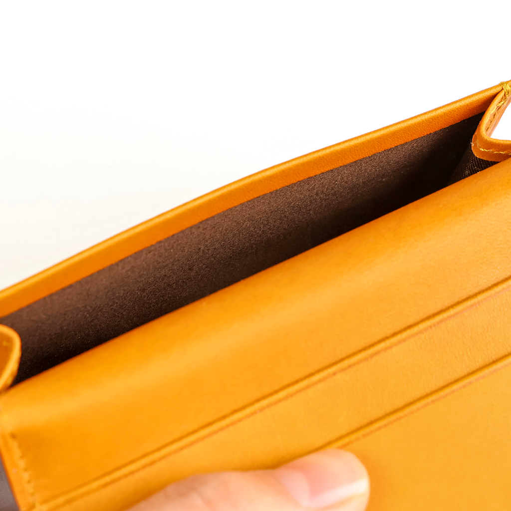 内側にはナチュラルな革の風合いを愉しめるヌメ革らしいキャメルカラーをセレクト。