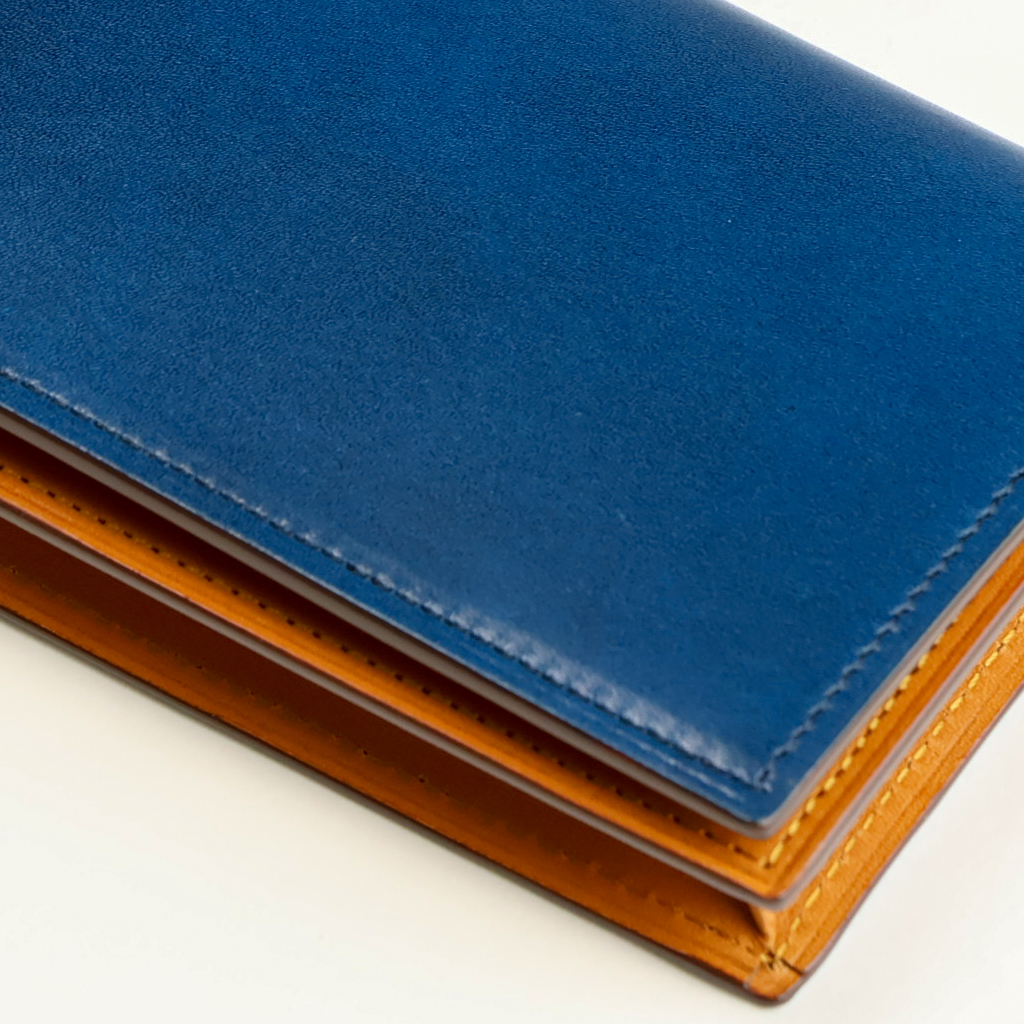 塗りと磨きを何度も繰り返し、磨き上げられた裁断面は、半透明な光沢感をもつ革の層が、何層にも透けて見える美しい仕上がりになります。
