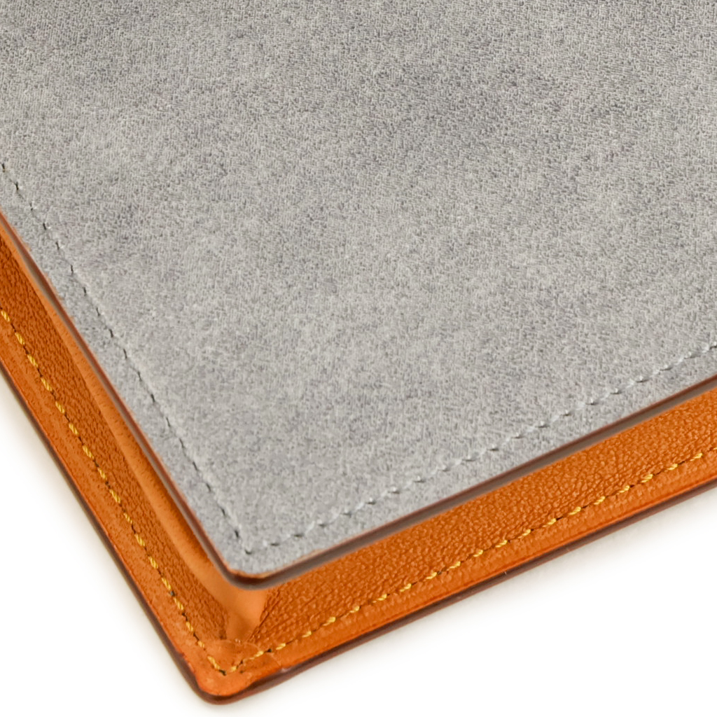 塗りと磨きを何度も繰り返し、磨き上げられた裁断面は、半透明な光沢感をもつ革の層が、何層にも透けて見える美しい仕上がりになります。