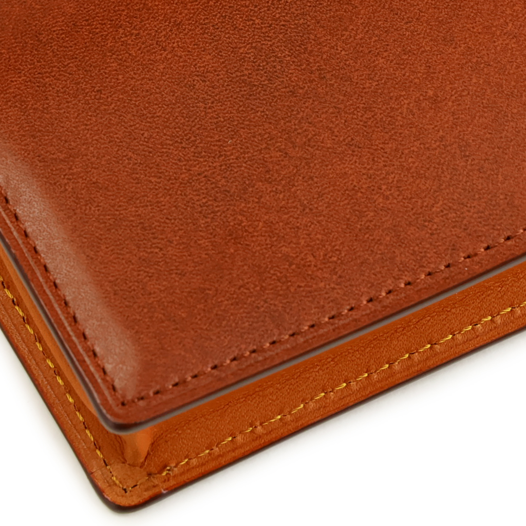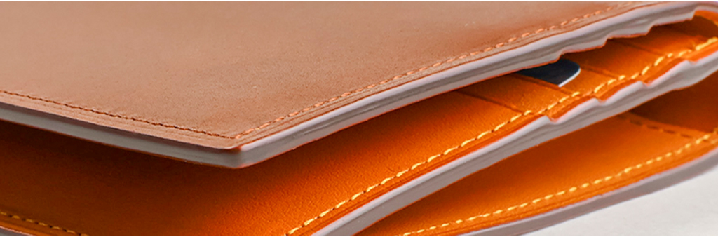 塗りと磨きを何度も繰り返し、磨き上げられた裁断面は、半透明な光沢感をもつ革の層が、何層にも透けて見える美しい仕上がりになります。