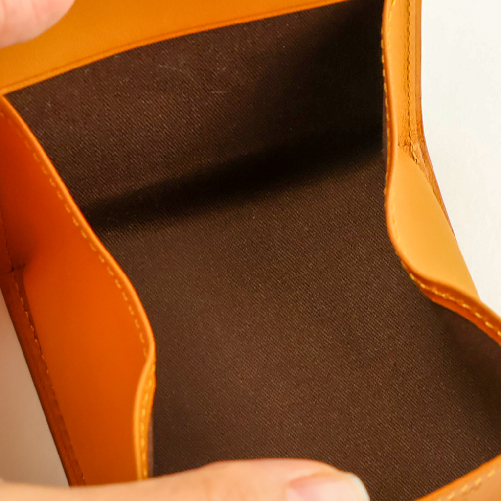 内側にはナチュラルな革の風合いを愉しめるヌメ革らしいキャメルカラーをセレクト。