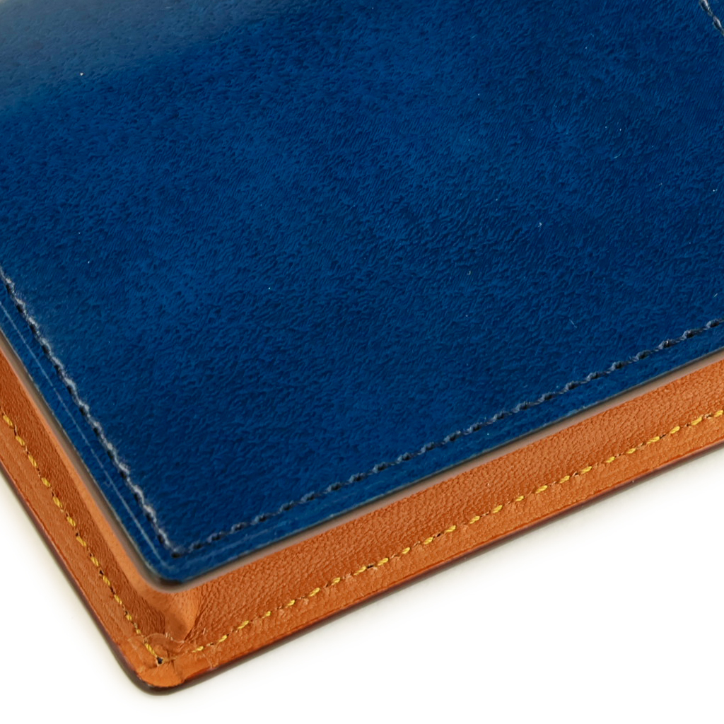 塗りと磨きを何度も繰り返し、磨き上げられた裁断面は、半透明な光沢感をもつ革の層が、何層にも透けて見える美しい仕上がりになります。