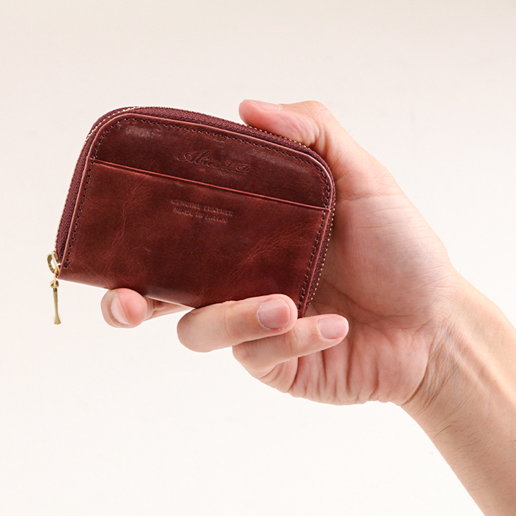 牛革の小銭入れ、コインケースです。手のひらやポケットに収まりのよいコンパクトサイズ。
